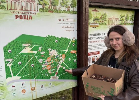 С целью накормить белок, обитающих на территории Чистяковской рощи – крупного парка в центре Краснодара, сотрудники филиала доставили туда колотые семена ореха чёрного